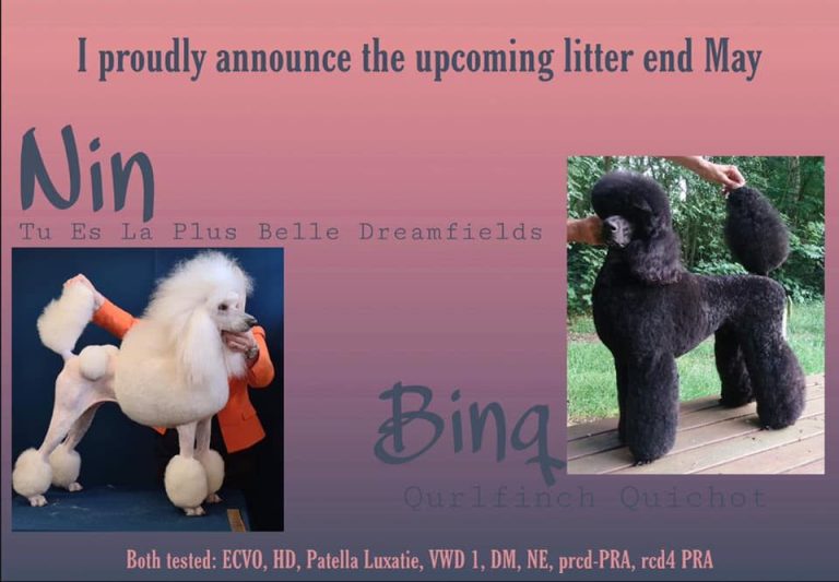Op 31 mei zijn er 4 pups geboren uit de combinatie Tu Es La Plus Belle Dreamfields and Curlfinch Quichot.